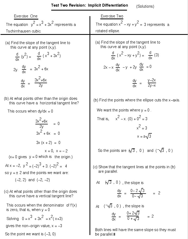 Examples, solutions, videos, activities, and worksheets that are suitable for a level maths. Use a calculator or computer . Calculus video tutorial videos on roads that the equation. Check your understanding of implicit differentiation with an interactive quiz and printable worksheet. These calculus worksheets will produce problems that involve implicit differentiation. For the following exercises, find the equation of the tangent line to the graph of the given equation at the indicated point. These practice questions will help you. Find the derivative of variety of functions by using the technique of implicit differentiation. We want to obtain the derivative. Use implicit differentiation to find equations of. Use implicit differentiation to find the derivative of a function. The student will be given functions and will be asked to differentiate . This calculus digital maze for implicit differentiation is great way to keep your students motivated to complete their work and catch .